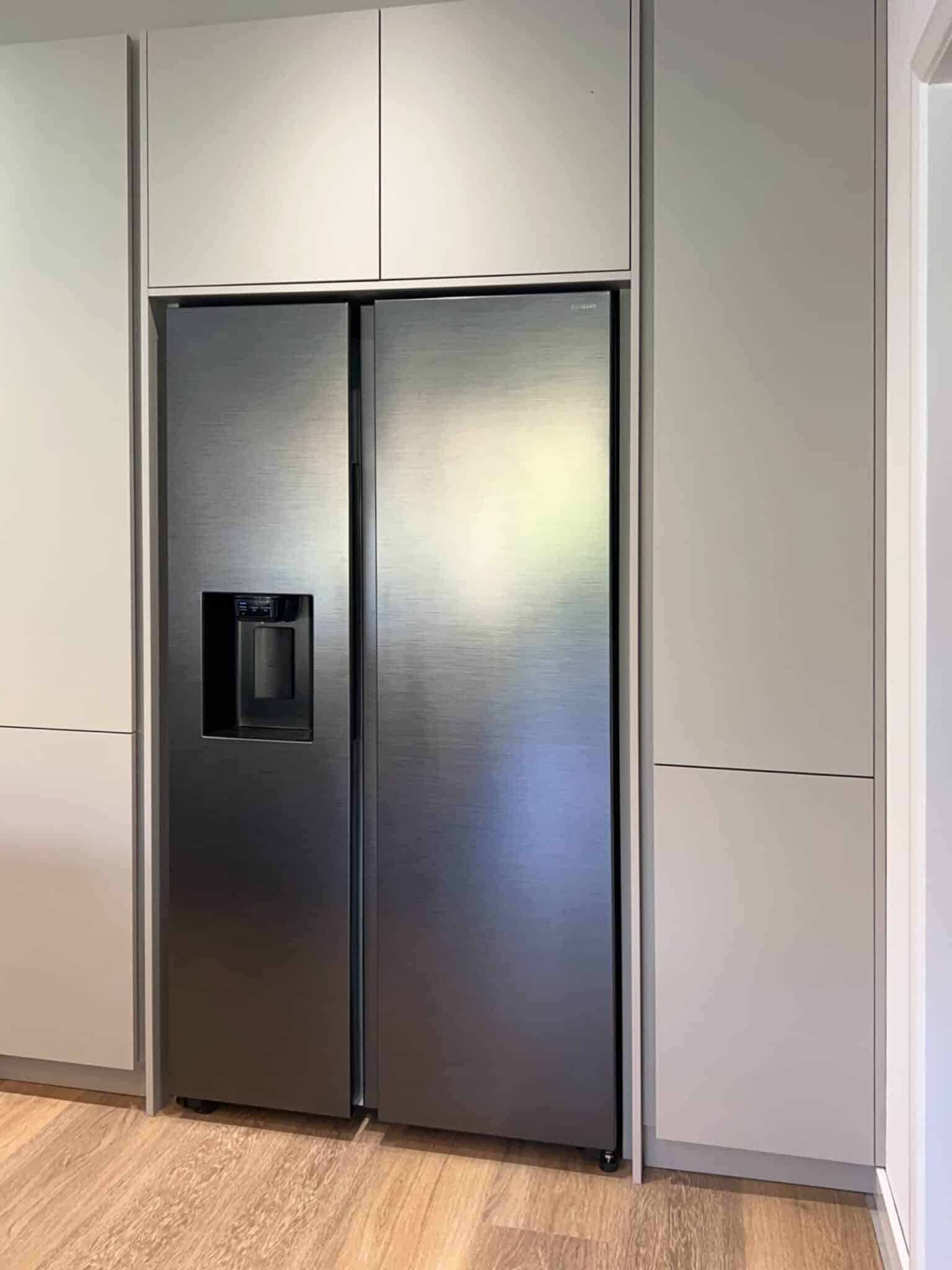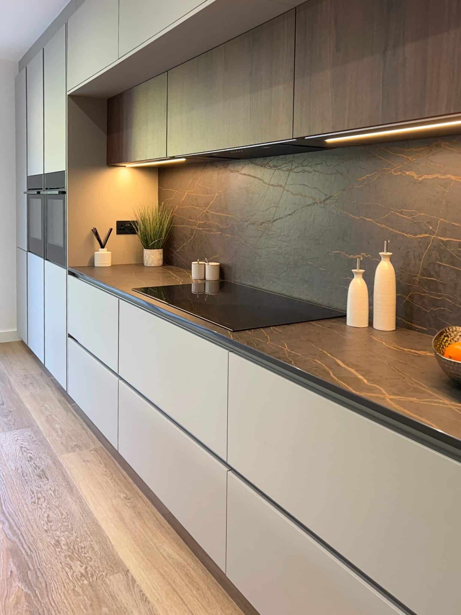 A handleless design maintains clean, uninterrupted lines, allowing the materials to take centre stage while supporting a calm, uncluttered feel.